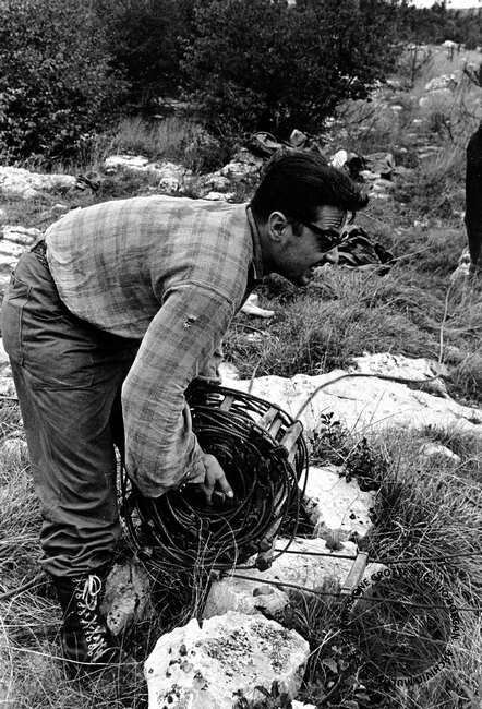 GROTTA NOE -90VG/23R Anno: 1959 Località: CARSO TRIESTINO Persone: ALLIEVO CHE RECUPERA SCALE Album: 13 / Foto: 44 Vista: 367