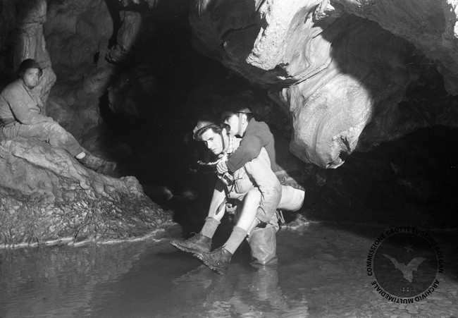 GROTTA DI VIGANTI-66FR/110R Anno: 1952 Località: FRIULI Persone: LUCIANO BENEDETTI,LIVIO BOLLETTI,CARLO MOSETTI Album: 140 / Foto: 366 Vista: 366
