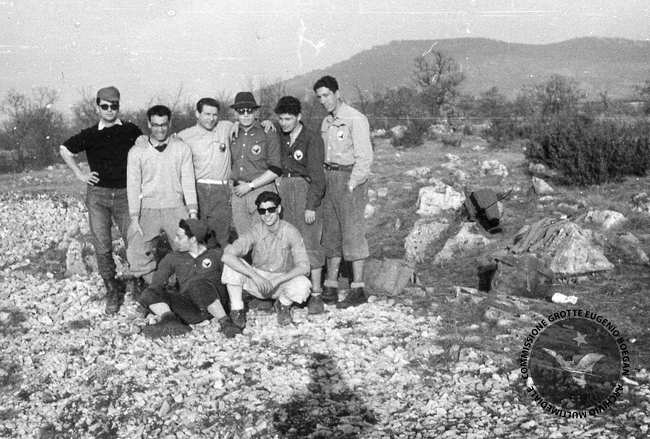 POZZO DEI COLOMBI Anno: 1961 Località: CARSO Persone: M.RADIVO,A.KOZEL,N.BONE,L.FORTI,M.DELLA VALLE,M.VIANELLO,G.BALDO,A.DIQUAL Album: 32 / Foto: 2 Vista: 365