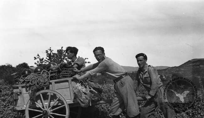 TRASPORTO MATERIALI SUL CARSO Anno: 1936 Località: CARSO Persone: C.FINOCCHIARO-L.S.MEDEOT-CORAZZA Album: 70 / Foto: 31 Vista: 366